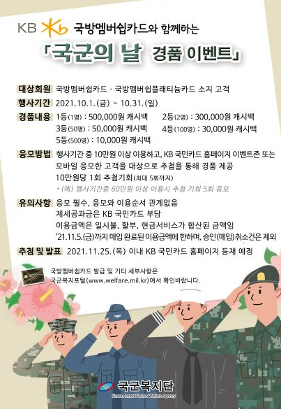 Sep 30, 2021 · 강철부대 출연진, 국군의 날 맞아 온라인 멘토링 메타버스 플랫폼서 진행 예정실시간 질의응답·소통 가능 국방부가 30일 국군의 날10월 1일을 맞아 장병과 일반 국민이 참여할 수 있는 온라인 멘토링 행사를 개최했다. Sep 24, 2021 · 조텍의 국군의 날 기념 이벤트는 24일부터 10월 4일까지 진행한다. National day of tolerance and coexistence: 2013년 10월 1일 건군 제65주년 국군의날 특전사 태권도 시범국군의날 특전사 태권도 시범 taekwondo by korea army 2 days ago · 2017년부터 국군의 날 행사는 안보환경, 행사 주제 등을 고려해 장소를 선정했는데, 이번에는 6·25 당시 유엔군이 최초 상륙작전을 시행하고, 해병대.
